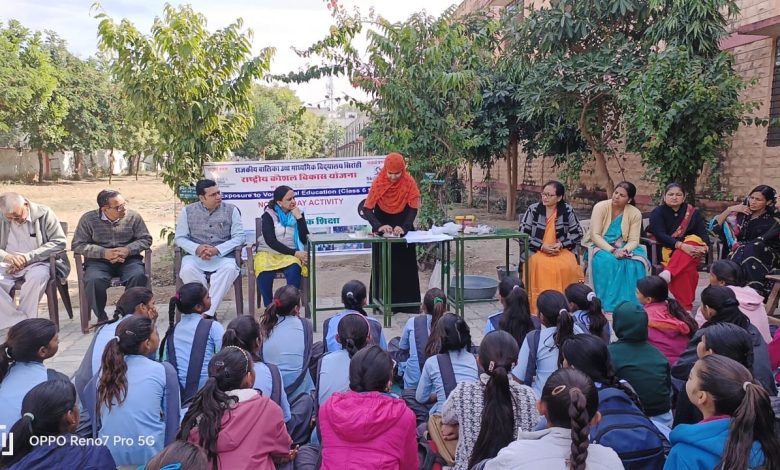 राजकीय बालिका उच्च माध्यमिक विद्यालय सिरोही में राष्ट्रीय कौशल विकास योजना के तहत रंगाई व बंधेज कला सिखाई । कार्यक्रम का शुभारंभ प्रधानाचार्य श्रीमती हीरा खत्री व उप प्रधानाचार्य सुरेश कुमार शर्मा ने मां शारदे के समक्ष दीप प्रज्जवलित व पुष्प समर्पित कर किया।व्यवस्था सहयोगी गोपालसिंह राव के अनुसार कक्षा छह से आठ की बालिकाओं को एक्स्पोज़र टू वोकेशनल एजुकेशन कार्यक्रम के तहत जीवनोपयोगी कौशलों में प्रशिक्षण देकर देखकर करके सीखाया जा रहा है। दक्ष प्रशिक्षक गुलनार ने कपड़ों को डाई करना,रंगना, बंधेज करना, कशीदाकारी करना सीखाया। कौशल मित्र वरिष्ठ व्याख्याता अनिता चव्हाण के मार्गदर्शन में ओढ़नी व दुपट्टों में लहरिया प्रिन्ट, पतंग, डब्बा बनाना तथा किनारों को रंगना सीखाया गया। बालिकाओं ने स्वयं भी उत्सुकता से रूचि लेकर सभी कलाएं करके सीखी।राव ने राष्ट्रीय कौशल विकास योजना पर प्रकाश डाला। कार्यक्रम में कौशल मित्र अनिता चव्हाण,उत्सव व जयंती प्रभारी गोपाल सिंह राव, कल्पना चौहान ,कुसुम परमार, तृप्ति डाबी, श्रद्धा सिंदल, वर्षा त्रिवेदी, बृजेश पालीवाल, देवी लाल,शंकर सिंह राठौड़ ,रमेश कुमार मेघवाल, व्यवसायिक प्रशिक्षक कीर्ति सोलंकी, कामिनी रावल व बालिकाएं उपस्थिति रही ।