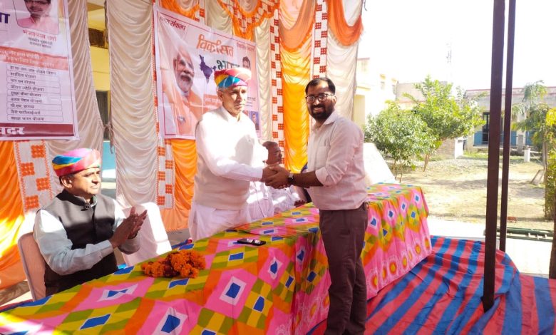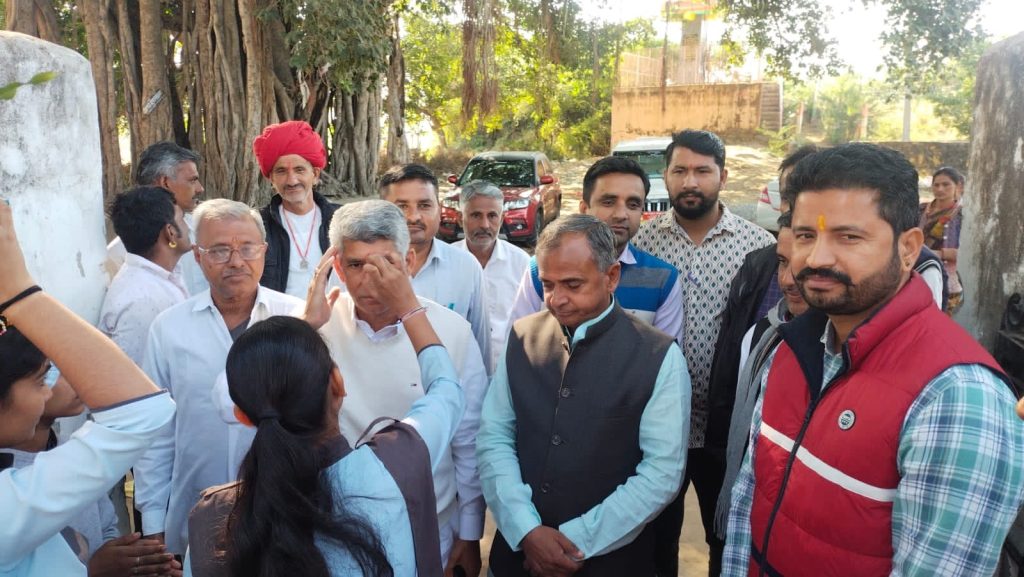 विकसित भारत संकल्प यात्रा” अभियान के तहत आज ग्राम पंचायत भटाना में आयोजित कार्यक्रम में जिला प्रमुख के साथ पूर्व विधायक जगसीराम कोली ने भी शिरकत कर मोदी सरकार की जन कल्याणकारी योजनाओं के लाभार्थियों से विस्तृत चर्चा की और लोकप्रिय प्रधानमंत्री नरेन्द्रमोदी की गारंटीयों से सभी को अवगत करवाया।इससे पूर्व जिला प्रमुख व पूर्व विधायक जगसीराम कोली का ग्रामीणों ने समैया कर भव्य स्वागत किया व स्कूली छत्राओ ने तिलक लगाया।