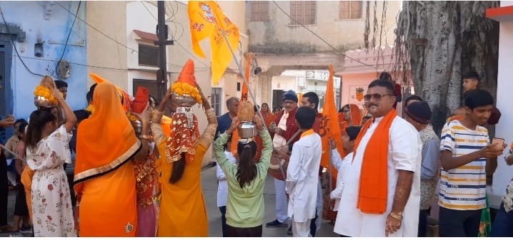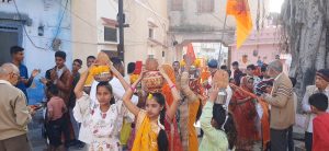 अक्षत कलश यात्रा का बड़ी ब्रम्हपुरी में भव्य स्वागत,घर घर बांटे पीले चावल, श्री गदाधर भगवान से चारभुजा जी तक निकली भव्य यात्रा