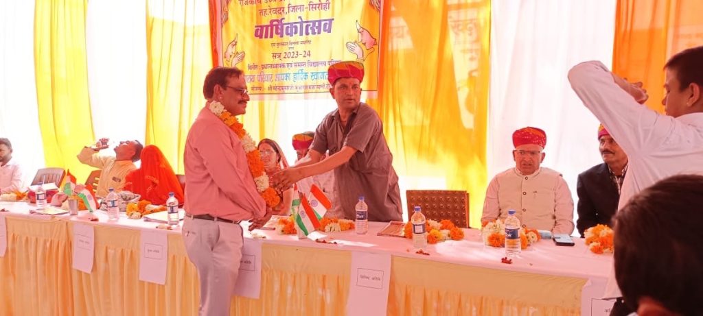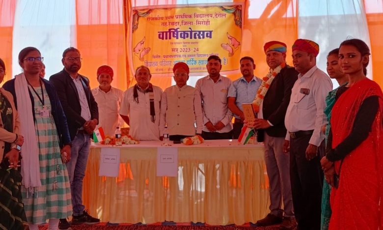 राजकीय उच्च प्राथमिक विद्यालय देरोल में मंगलवार को वार्षिक उत्सव एवं पुरस्कार वितरण समारोह संगम का आयोजन किया गया। जिसमें मुख्य अतिथि के रूप में उप प्रधान रेवदर उर्मिला देवी वैष्णव, सरपंच ग्राम पंचायत जोलपुर गोकुल राम कोली, सामाजिक कार्यकर्ता आत्माराम वैष्णव व पंचायत प्रारंभिक शिक्षा अधिकारी शंकर लाल मीणा और भामाशाह प्रकाशनाथ गोस्वामी, जितेंद्र नाथ गोस्वामी, भावेश नाथ गोस्वामी, सवाराम मेघवाल, देवराज माली, कालूराम माली, देवाराम माली, देवाराम मेघवाल, महेंद्र कुमार माली, नरसाराम मेघवाल, वार्ड पंच हकम कंवर, कंचन देवी के साथ संस्था प्रधान शैलेश कुमार कोली, राजकीय उच्च प्राथमिक विद्यालय विकनवास से बाबूराम मेघवाल, राजकीय उच्च प्राथमिक विद्यालय वाडका से अरविंद कुमार जीनगर, राउमावि जोलपुर से राम अवतार गुर्जर सहित सभी ने मां शारदे के सम्मुख दीप प्रज्वलन कर कार्यक्रम की विधिवत शुरुआत की। कार्यक्रम में पधारे समस्त अतिथियों, भामाशाहों का माला, साफा, शॉल व मोमेंटो प्रदान कर स्वागत किया। इस मौके पर बालक और बालिकाओं ने एक से बढ़कर एक सांस्कृतिक प्रस्तुतियां दी।