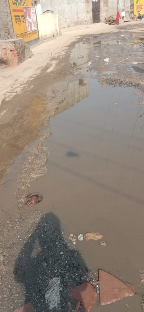 सीसी रोड का मरम्मत कार्य नहीं हुआ डेढ़ वर्ष बीता जल भराव के कारण ग्रामीण परेशान