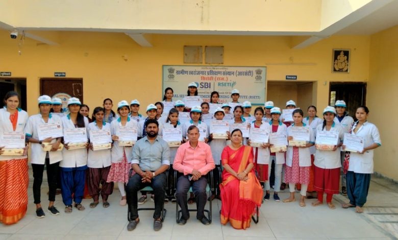 ग्रामीण विकास मंत्रालय भारत सरकार द्वारा एसबीआई ग्रामीण स्वरोजगार प्रशिक्षण संस्थान (एसबीआई-आरसेटी ) सिरोही द्वारा आयोजित वुमेन टेलर प्रशिक्षण कार्यक्रम आरसेटी लक्ष्मीनगर सिरोही में संपन्न हुआ, इस प्रशिक्षण में जिले की ग्राम जोगापुरा से 32 उम्मीदवारों ने भाग लिया। इस मौके पर सादा समारोह आयोजित कर एसबीआई आरसेटी सिरोही के निदेशक कैलाश गहलोत द्वारा भागीदारी के प्रमाण पत्र वितरित किए गए। उन्होंने समस्त उम्मीदवारों से चर्चा करते इस प्रशिक्षण से हासिल किए गए कौशल का पूरा लाभ उठाने का आव्हान किया तथा अभ्यर्थियों को स्वरोजगार के बारे में प्रोत्साहित , हर संभव मदद करने व आत्मनिर्भर बनने के लिए कहा। उन्होंने कहा कि इसका मूल उद्देश्य विशेष रूप से ग्रामीण युवाओं के लिए संभावित छोटे उद्यमियों – उधारकर्ताओं का कौशल निर्माण करना है, अद्वितीय है क्योंकि यह मुफ्त भोजन और आवास के साथ गहन अल्पकालिक आवासीय स्वरोजगार प्रशिक्षण कार्यक्रम है। विशेषकर बेरोजगार ग्रामीण युवाओं के लिए। जिसमे आरसेटी स्टाफ अनुदेशक पपिया राम मीणा, हितेश खत्री एवम् कार्यालय सहायक प्रवीण कुमार, भंवर लाल , मास्टर ट्रेनर लीना बेन पंचाल , एसेसर एम के जैन एवम् नंदिता शर्मा उपस्थित रहे।