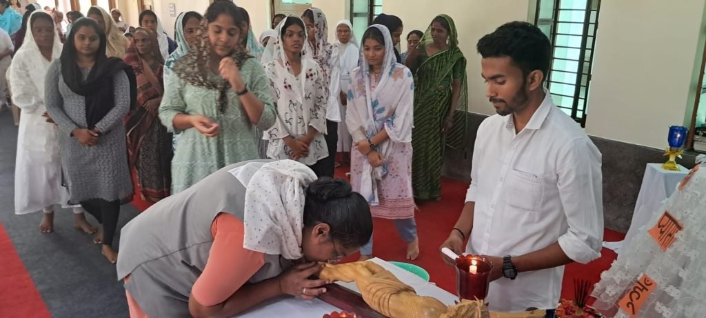 स्थानीय सेंट जोसेफ कैथोलिक गिरजाघर के गुड फ्राइडे पर आयोजित प्रार्थना व आराधना कार्यक्रम में गिरजा घर के पल्ली पुरोहित फादर जोमी फादर सीवी अब्राहम फादर जिमी के आयोजित हुई सिरोही सेंट जोसेफ कैथोलिक गिरजाघर के प्रवक्ता रणजी स्मिथ ने बताया कि गुड फ्राइडे पर पुण्य शुक्रवार को पूजन विधि समारोह के दिन भागों में आयोजित हुई इसमें पहला भाग शब्द समारोह दूसरा भाग क्रॉस की उपासना तीसरा भाग परम प्रसाद विधि के माध्यम से आयोजित हुई जिसमें सेंट जोसेफ कैथोलिक गिरिजा के परिसर में 14 स्थान पर श्रद्धालुओं द्वारा घुटने टेकर प्रार्थना वह आराधना आरंभ हुआ क्रॉस की उपासना का समापन गिरजा करके मुख्य द्वार पर संपन्न हुआ 10 मिनट के विश्राम के पश्चात पूजन विधि समारोह में शब्द समारोह का आयोजित हुआ जिसमें युवाओं द्वारा पवित्र बाइबल के ग्रंथ को पढ़ा गया उसके पश्चात फादर जिमी ने पवित्र स समाचार के द्वारा श्रद्धालुओं को संबोधित करते हुए कहा कि प्रभु यीशु ने अपना रक्त बहाकर पास का संस्करण स्थापित किया है प्रभु यीशु ने दुख भोग द्वारा मृत्यु का विनाश कर हमारा उद्धार किया है दुख भोग हमें सिखाता है की दुख संकट मानव जीवन की जीवन रूपी सीढी की आखिरी सीढी नहीं है बल्कि हर दुख संकट आनंद से प्रभु ललित होने वाला बीज मंत्र है सहनशीलता के साथ उठाया गया दुख संकट हमें मिलने वाला अपार पुरस्कार की प्रतिष्ठा एवं प्रतिष्ठ प्रत्यक्ष करने उनके केंद्र करने तथा उन्हें संकट सहने के लिए प्रेरक होता है उन्हीं के द्वारा हमारे अभयानंतर में स्वर्गीय सौभाग्य का प्रारंभ होता है और सच्ची शांति और भाईचारा कायम रहता है हमें अपना अल्प कलशो को अधिक सरता से सहने के निर्मित दूसरों के कठिन कलशो को सहन करना चाहिए यदि हम प्रभु यीशु के दुख पिड पर ध्यान देंगे तो हमें कभी अपना दुख सहने में कठिनाई नहीं होगी उन्होंने अपना संबोधन में कहा कि मानसिक पीड़ा शारीरिक गांव या चोट जल्दी ठीक होने की उम्मीद कर सकते हैं लेकिन मन में लगी चोट जल्दी ठीक होने का नाम नहीं लेती है वह हमें बार-बार याद दिलाती रहती है आज मनुष्य भौतिकवाद जीवन व्यवस्था की ओर अग्रसर हो रहा है वही मनुष्य अपने प्रिय जनों को भी भूल जाते हैं उन्होंने कहा कि मनुष्य अपने बुजुर्ग माता-पिता को पहचानने से इनकार करते हैं क्या उन्हें प्यार और सम्मान देते हैं अथवा उनको अपने जीवन को अकल अकेले बिताने को निवेश करते हैं यह हमारे लिए अंदर आत्मा से विचार करने का विषय है इन सब का मुख्य एक कारण है ईश्वर के प्रति हमारी आस्था का काम होना पारिवारिक संस्कार एक के प्रति दूसरा का सम्मान एवं भाईचारा की कमी जब मनुष्य को कठिन परिस्थिति उत्पन्न होती है तब मनुष्य ईश्वर की ओर दौड़ लगाता है मनुष्य को दुख और सुख में भ