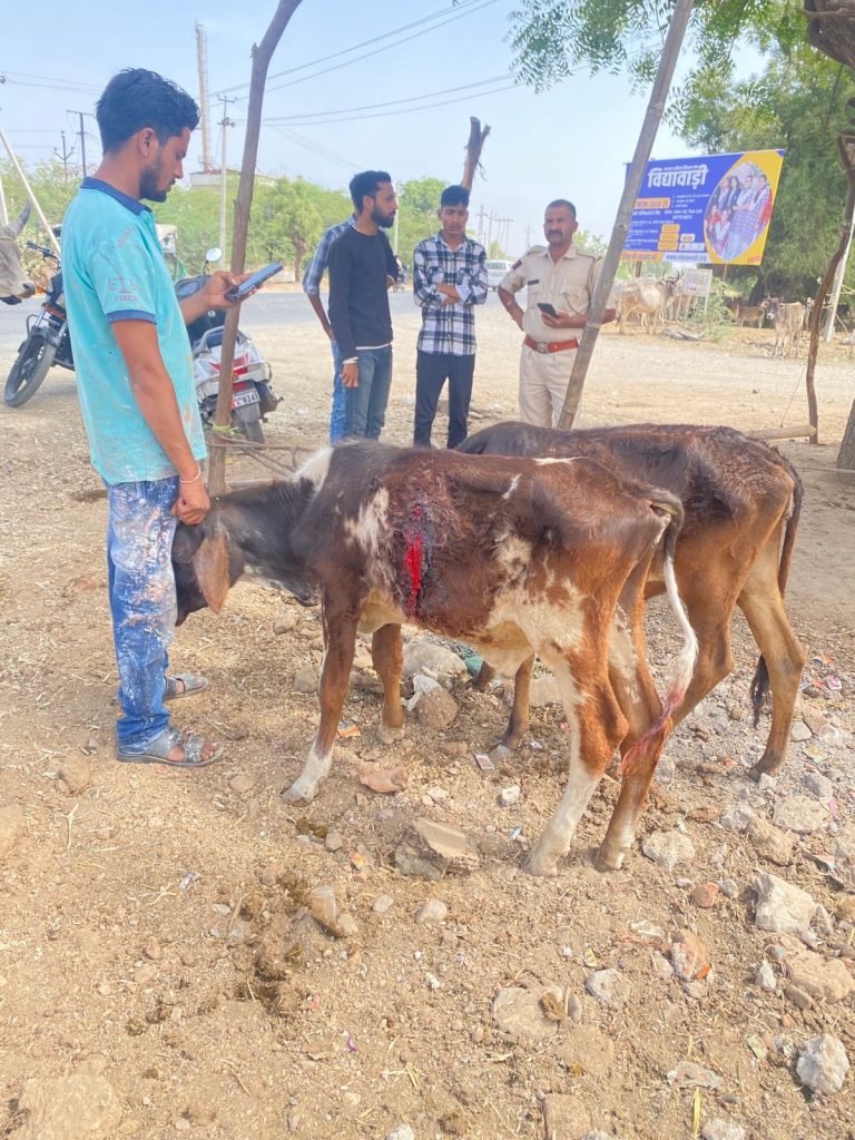 बेजुबान पर धारदार हथियार से वार 4 गोवंश को किया जख्मी 3 को पहुंचाया गौशाला। समीपवर्ती वेरा जेतपुरा प्याऊ के पास अज्ञात हमलावरों ने चार गोवंश को कुल्हाड़ी मारी गई खून से लत पत गोवंश को सड़क किनारे घूमता देखा ग्रामीणों द्वारा सूचना पर ॐ श्री गजानंद सेवा समिति अध्यक्ष मंगल कुमार मीणा और महिपाल रावल एनीमल हेल्प के पशु प्रेमियों ने इक्कठा होकर पुलिस प्रशासन को जानकारी दी बाद गौशाला अध्यक्ष बाबूलाल परिहार को जानकारी देकर इलाज हेतु पशु एंबुलेंस के माध्यम से 2 को शिवगंज गौशाला और 1 को पांजरा पोल गौशाला पहुंचाकर उपचार शुरू करवाया मीणा ने बताया क्षेत्र में सिलसिलेवार बेजुबान गोवंश पर कुल्हाड़ी की वारदात सामने आ रही है जिससे गौ सेवकों में भारी रोष व्याप्त है प्रशासन द्वारा अलग से टीम का गठन कर मामले को गंभीरता पूर्वक लेते हुए दोषियों पर कार्रवाई करें ताकि दोबारा इस प्रकार की घटनाएं क्षेत्र में गठित ना हो और अपराधियों में भी डर का माहौल बना रहे इस दौरान पन्नालाल मीणा,अशोक कुमार हरिजन,हितेश कुमार मीणा,छगनलाल रावल आदि उपस्थित रहे