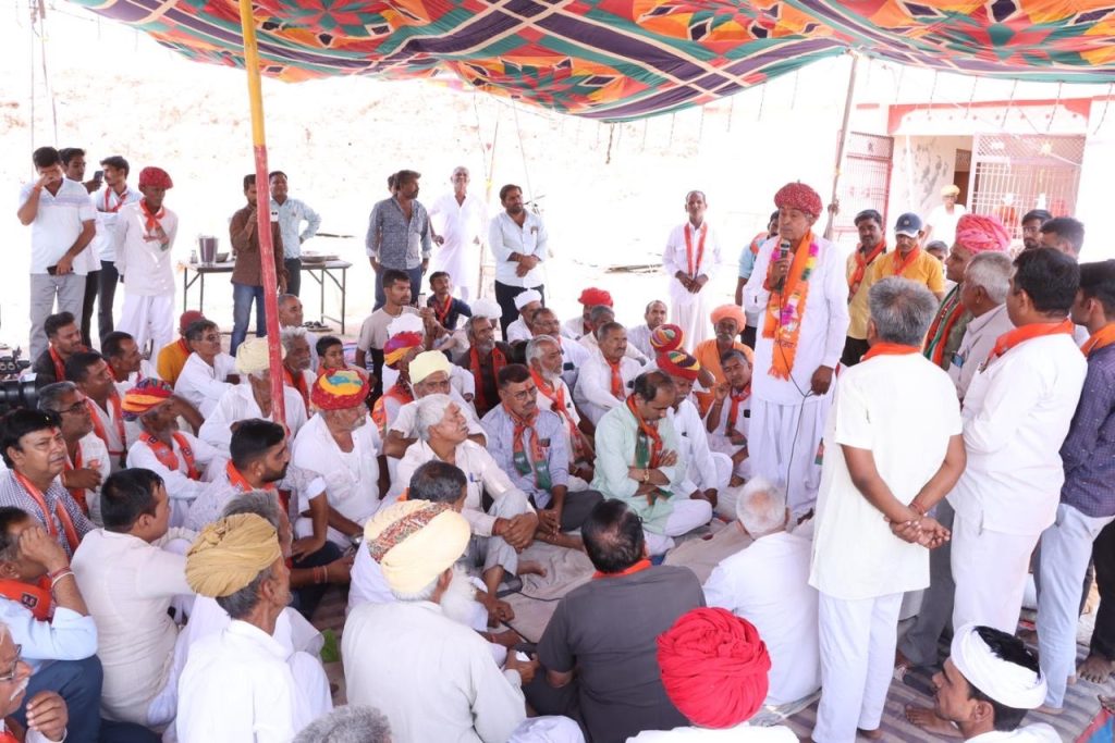 लोकसभा प्रत्याशी लुम्बाराम चौधरी ने कहा भाजपा हर वर्ग को साथ में लेकर कार्य करने वाली विश्व की सबसे बड़ी पार्टी है। मेरे जैसे गरीब किसान परिवार से जुड़े व्यक्ति को लोकसभा प्रत्याशी बनाना, भाजपा को अन्य पार्टियों से अलग दर्शाता है। केंद्र की मोदी सरकार ने गांव गरीब, युवा, किसान, महिला के उत्थान के लिए अनेक जन कल्याणकारी योजना चलाई है। जिससे अंतिम पंक्ति का आम जन लाभान्वित हुआ है।