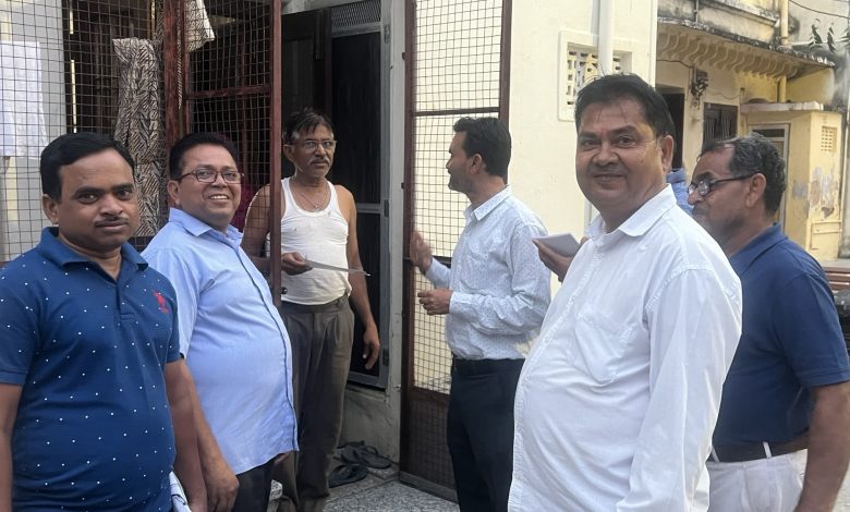 जीनगर समाज प्रतिभा सम्मान समारोह की आमंत्रण पत्रिका वितरित करते समाज बंधु