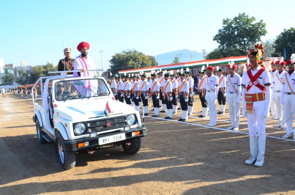 जिला स्तरीय समारोह में प्रदेश के ग्रामीण विकास एवं पंचायतीराज ,आपदा प्रबंधन, सहायता एवं नागरिक सुरक्षा विभाग के राज्यमंत्री ओटाराम देवासी ने ध्वजारोहण कर परेड का निरीक्षण किया और मार्च पास्ट की सलामी ली।