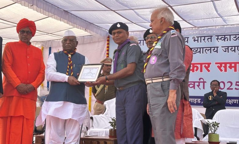 सी ओ स्काउट एमआर. वर्मा को बार टू मेडल ऑफ़ मेरिट अवार्ड से राज्यपाल हरिभाऊ बागड़े ने किया सम्मानित,