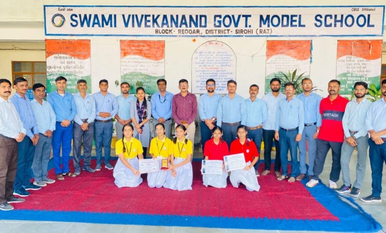 स्वामी विवेकानन्द राजकीय मॉडल स्कूल ब्लॉक रेवदर की छात्राओं ने जिला स्तर पर मॉडल प्रतियोगिता में प्रथम स्थान प्राप्त किया। प्रधानाचार्य केशर सिंह राव ने बताया की स्थानीय विद्यालय की छात्राओं ने अर्न्तराष्ट्रीय बालिका दिवस के उपलक्ष्य में जिला स्तरीय मॉडल प्रतियोगिता में रानी रत्नावती स्कूल जैसलमेर का मॉडल बनाकर प्रदर्शन किया। जिसमें छात्रा चारवी रावल रिया रावल एवं दीक्षित कंवर राणावत कक्षा 8 ने जिला स्तर पर प्रथम स्थान प्राप्त कर विद्यालय का नाम रोशन किया। इसके प्रभारी मोहनराम व्याख्याता ने इनके मॉडल बनवाने में महत्वपूर्ण सहयोग किया। इसी के साथ विद्यालय की छात्राओं ने राज्य स्तरीय आर्ट एण्ड क्राफ्ट प्रतियोगिता में स्थल जैसलमेर में भाग लेकर कलस्टर-12 का प्रतिनिधित्व किया। जिसमें रमेश कुमार राजपूत व अध्यापक सेजल कंवर कला अनुदेशक प्रभारी के रूप में इनके साथ गये व इन्हें मॉडल बनवाने में सहयोग किया। साथ ही इन्हें रानी रत्नावती स्कूल जैसलमेर व सम रेगिस्तान का भ्रमण भी करवाया। प्रधानाचार्य केशर सिंह राव ने इनके विद्यालय आगमन पर इनका प्रशस्ति पत्र व मोमेन्टो देकर इनका बहुमान किया साथ ही इनके उज्जवल भविष्य की कामना की।