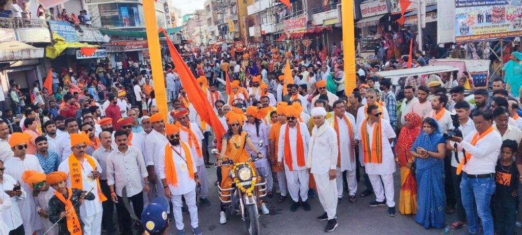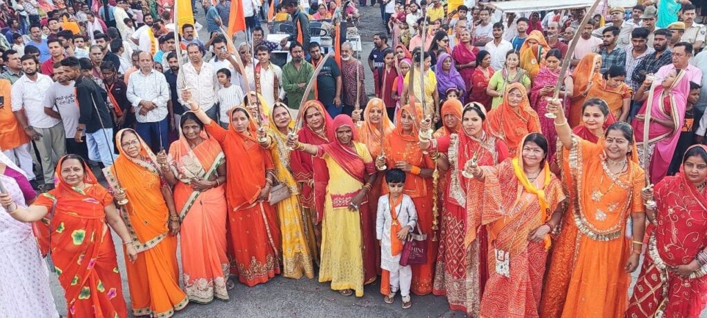 सशस्त्र मातृशक्ति,अखाड़ो के शक्ति प्रदर्शन, के साथ ढोल नगाडोव राम के जयकारो से गुजायमान हुआ शहर