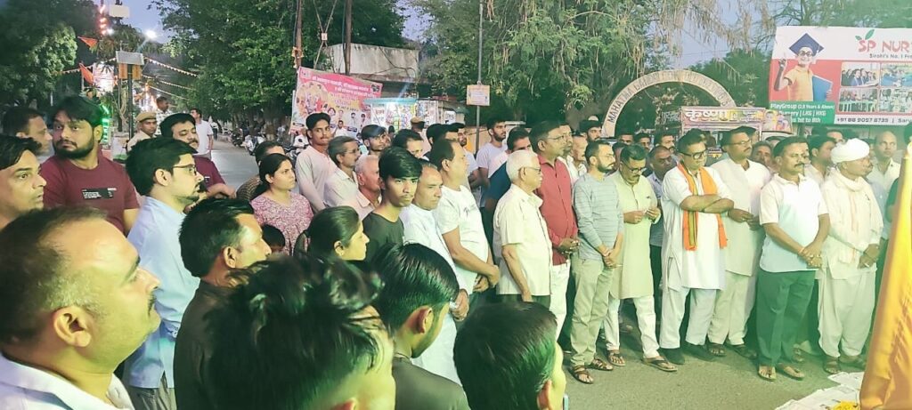पहलगाम में पर्यटकों के नरसंहार की घटना पर सर्व हिंदू समाज की ओर से केंडल लगाकर श्रद्धांजलि दी।