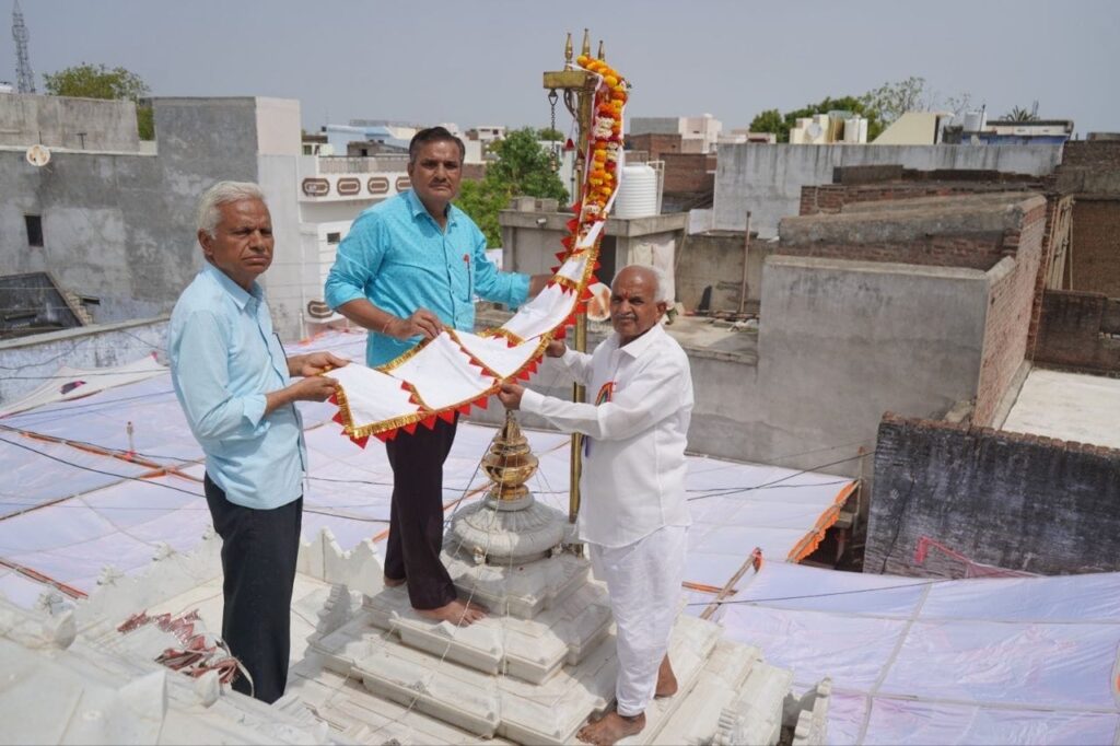 मंदिर शिखर पर चढ़ाई अमर ध्वजा