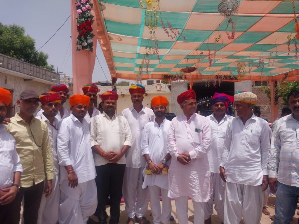 पूर्व विधायक संयम लोढ़ा, जिला प्रमुख अर्जुनराम पुरोहित, प्रधान हसमुख मेघवाल,पत्रकार सुरेश जुगनू, सुरेश पाड़ीव समेत अन्य गणमान्य का सरतरा ग्रामवासियो की ओर से साफा पहनाकर स्वागत किया गया।