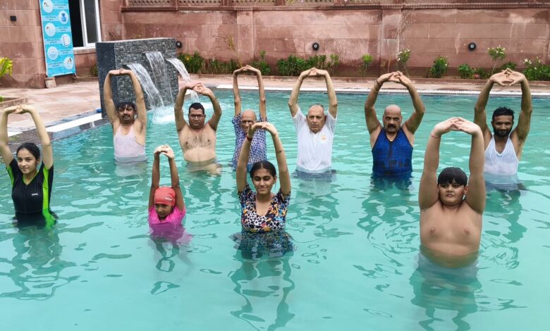 तरणताल में किया योगाभ्यास, अन्तर्राष्ट्रीय योग दिवस की तैयारियां जोरों पर,