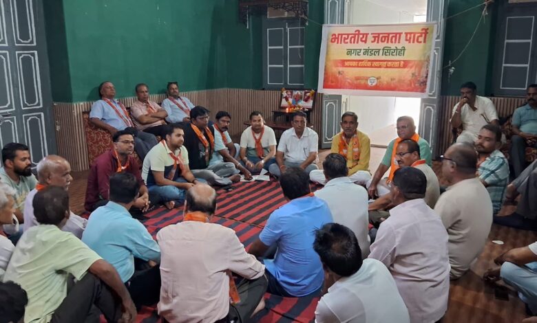 भाजपा प्रदेश एवं भाजपा जिला अध्यक्ष डॉक्टर रक्षा भंडारी के निर्देशानुसार बलिदान दिवस व आपात काल (काला दिबस) की 50 वी बरसी पर सिरोही नगर मंडल के सरजावाव मैदान में भाजपा के मीसा बन्दी सम्मान समारोह की तैयारियों को लेकर जिला महामंत्री नरपत सिंह राणावत ने नगर मण्डल की बेठक में शक्ति केंद्र व बूथ स्तर तक कार्यक्रम आयोजित कर आम सभा को सफल बनाने को लेकर विस्तृत कार्य योजना जारी की।