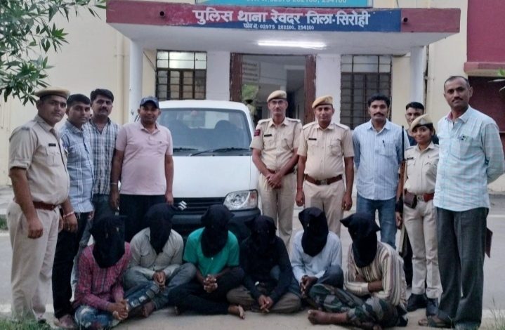 राजगढ़ व रेवदर के बीच एक अज्ञात ईको कार से वृद्ध महिला को लुट के उद्देश्य से गाड़ी में बैठाकर छीना-झपटी करने वालो छः व्यक्तियों को रेवदर पुलिस ने गिरफ्तार किया। ज्येष्ठा मैत्रेयी, जिला पुलिस अधीक्षक सिरोही द्वारा संपत्ति संबंधी अपराधों की रोकथम व बरामदगी हेतु चलाए जा रहे विशेष अभियान के तहत् बृजेश सोनी, अतिरिक्त पुलिस अधीक्षक सिरोही व राजीव राहड वृताधिकारी वृत रेवदर के निकट सुपजरविजन में कपूराराम नि.पु. थानाधिकारी पुलिस थाना रेवदर मय टीम द्वारा दिनांक 13 अक्टूबर 2023 को राजगढ़ व रेवदर के बीच एक अज्ञात ईको कार से वृद्ध महिला को लुट के उद्देश्य से गाड़ी में बैठाकर छीना-झपटी कर अज्ञात 05-06 व्यक्तियों द्वारा लुट कारित करने की घटना के सम्बंध में प्रकरण दर्ज कर पुलिस द्वारा घटना को गंम्भीरता से लेते हुए अज्ञात व्यक्तियों को नामजद कर 06 आरोपियों को गिरफ्तार किया गया है। गठित टीम में कपुराराम पु निं थानाधिकारी पुलिस थाना रेवदर, नारायणलाल हैड कानि न 56 पीएस रेवदर, हरिसिंह कानि, गोकुलसिंह कानि, भजनलाल कानि, भजनलाल कानि, श्रवण कुमार, खेराजराम कानि, नगाराम कानि, छुगसिह कानि यातायात शाखा रेवदर, सुरेश कुमार कानि डीसीआरबी सैल सिरोही रहे।