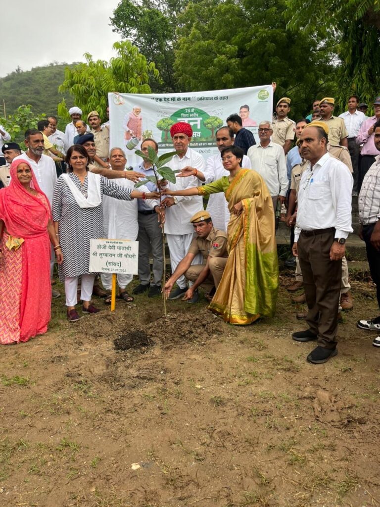 जिला कलक्टर अल्पा चौधरी ने एक पेड मां के नाम अभियान को अनुकरणीय बताते हुए सभी को पौधारोपण के लिए प्रेरित किया। इससे पूर्व कार्यक्रम में डीसीएफ मृदूला सिंह ने हरियालों राजस्थान अभियान की जानकारी दी एवं जिले को आवंटित लक्ष्य के बारे में बताया।