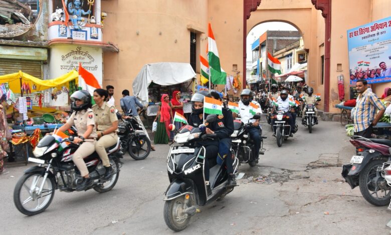 हर घर तिरंगा अभियान के तहत बुधवार को शहर में तिरंगा बाइक रैली का आयोजन किया गया।इस रैली में जिला प्रमुख अर्जुनराम पुरोहित,जिला कलेक्टर अल्पा चौधरी,पुलिस अधीक्षक प्यारेलाल,अतिरिक्त जिला कलेक्टर डॉ दिनेश राय सापेला,मुख्य कार्यकारी अधिकारी प्रकाश चंद अग्रवाल, एएसपी प्रभुदयाल धानिया, सीओ मुकेश चौधरी सहित जनप्रतिनिधि व जिला स्तरीय अधिकारियों कर्मचारियों व आमजन ने भाग लिया।