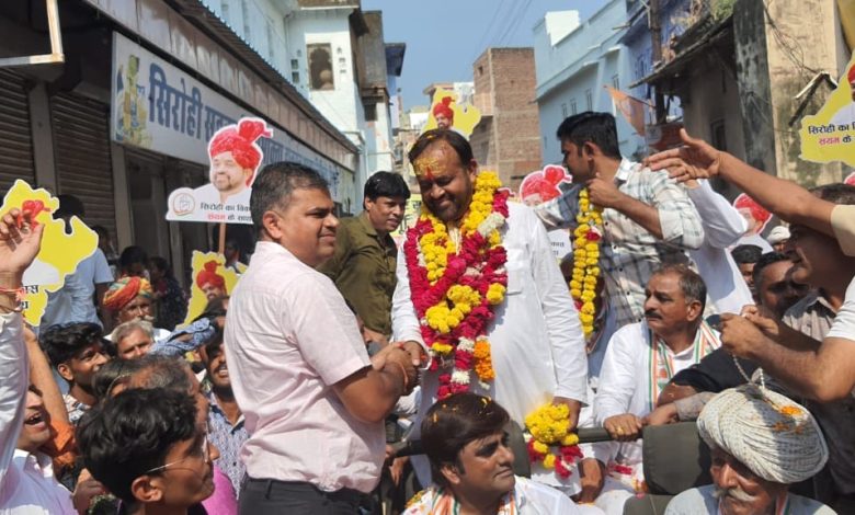 सिरोही विधान सभा क्षेत्र का चुनाव अब रोमांचक मोड़ पे आ गया है।जहां कोंग्रेस प्रत्याशी संयम लोढा ने सारणेश्वर महादेव के दर्शन कर अहिंसा सर्किल पे जमा हुए नामांकन रेली के हजारो समर्थकों को गत चुनावो में विजयी श्री के आशीर्वाद को बरकरार रखने की बात कहते हुए कहा की आपने निर्दलीय चुनाव जिताया तो आज सिरोही में हर क्षेत्र में विकास दिख रहा है व उनका सपना है सिरोही को विश्व के मान चित्र पे लाना। अहिंसा सर्किल पे सुबह 10 बजे से लोढा समर्थकों के आने का सिलसिला शुरू हो चुका था।विधायक व कोंग्रेस प्रत्यशी संयम लोढा के संबोधन के बाद विधायक लोढा सभापति महेंद्र मेवाड़ा,उप सभापति जितेंद्र सिंघी,जितेंद्र एरन,शिवि लोढा,मारूफ कुरेशी,सुंदर माली,व पूरी विधान सभा व नगर से आये समर्थकों के साथ नगर के प्रमुख मार्ग व सदर बाजार पर रैली निकली।सहकारी उपभोक्ता भंडार के बाहर व्यापारियों ने 11 किलो का हार पहिनाया। नामांकन रैली के सरूपविलास पहुचने के बाद उन्होंने भारी पुलिस सुरक्षा के मध्य अपना नामांकन पत्र रिटर्निंग ऑफिसर एसडीएम सुश्री सीमा खेतान के समक्ष विधिवत दाखिल किया।इस अवसर पर पुलिस उपअधीक्षक सिरोही पारस चोधरी व सिटी कोतवाल हंसाराम सीरवी सुरक्षा व्यवस्था पर पूरी नजर रखे हुए थे। भाजपा प्रत्याशी ओटाराम देवासी कल भरेगें नामांकन भाजपा प्रत्याशी ओटाराम देवासी शनिवार 4 नवम्बर को 12बजे नामांकन भरेगें। भाजपा जिला मीडिया प्रभारी रोहित खत्री ने बताया कि प्रत्याशी ओटाराम देवासी भाजपा से नामांकन के लिए अंहिसा सर्कल से रवाना होकर कलेक्ट्र पहुंचेगे। नामांकन में सिरोही-शिवगंज के हजारों की संख्या में कार्यकर्ता भाग लेगें।