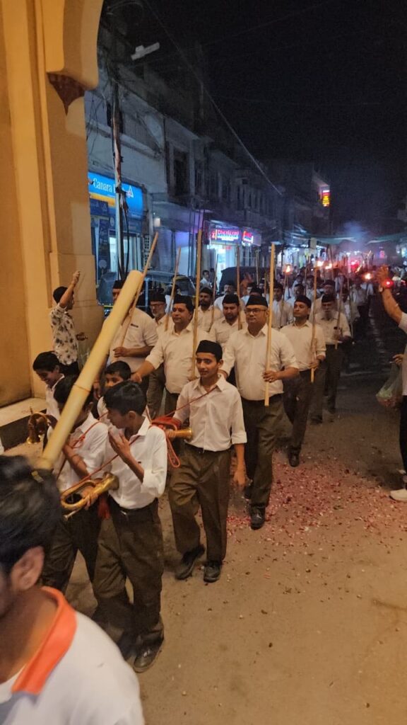 विजयादशमी पर राष्ट्रीय स्वयंसेवक संघ के शताब्दी वर्ष में प्रवेश से 6 दिन पूर्व शहर में शनिवार की रात्रि में मशाल के साथ भव्य कोमुदी पथ संचलन का आयोजन किया गया। संचलन में पहली बार घोष पथक एवं परम पवित्र भगवा ध्वज पर आकर्षक लाईट लगाई गयी थी जो अधेरे में अपनी अलग छटा बिखर रही थी। कार्यक्रम का शुभारंभ हाउसिंग बोर्ड स्कूल के पास स्थित वीर बाला कालीबाई उद्यान से हुआ। इस पथ संचलन के साथ ही संघ के शताब्दी वर्ष के उत्सव का शुभारम्भ शुरू हो गया।