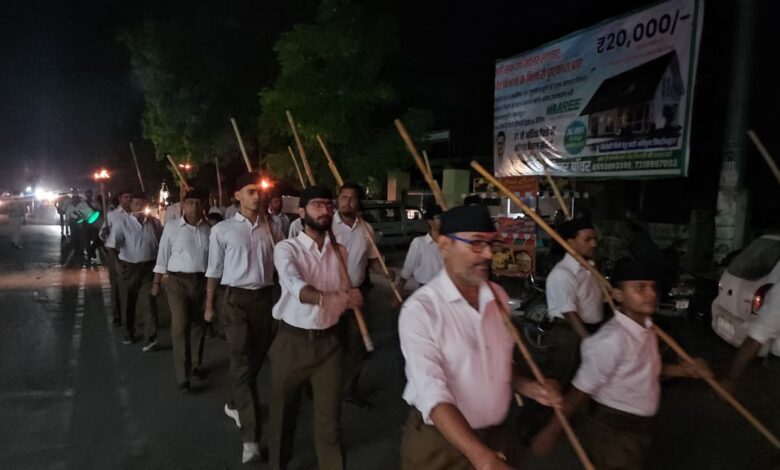 चंद्रमा के चांदनी में राष्ट्रीय स्वयंसेवक संघ का निकला कोमुदी पथ संचलन
