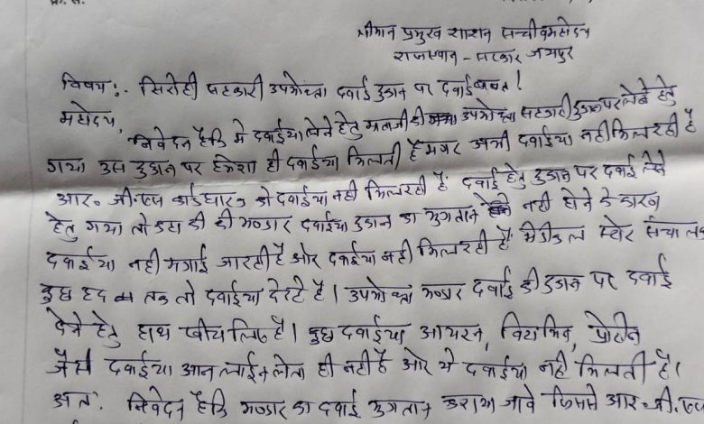 सिरोही। उपभोक्ता भंडार दवाई की दुकान पर दवाईया का भंडारण नहीं हो पाने से मरीज़ को कई समस्याओं का सामना करना पड़ रहा है। जिसको चलते एनएसयूआई के नगर अध्यक्ष मितेश सिंह ने प्रमुख शाशन सचिव राजस्थान सरकार को पत्र लिख माँग की। मितेश ने बताया की वह अपने माता जी की दवाई लेने उपभोक्ता भंडार पर दवाई लेने पहुँचा। लेकिन दवाईया नहीं मिल पा रही थी। दुकानदार ने बताया की भंडार का भुगतान नहीं होने के कारण दवाईया नहीं मंगाई जा रही।मेडिकल स्टोर संचालक कुछ हद तक तो दवाईया दे रहे है। नगर अध्यक्ष ने गुआर लगाई की भंडार की दवाई का भुगतान कराया जावे जिससे पेंशनर एव आरजीएचएस धारकों को दवाई मिल सके।
