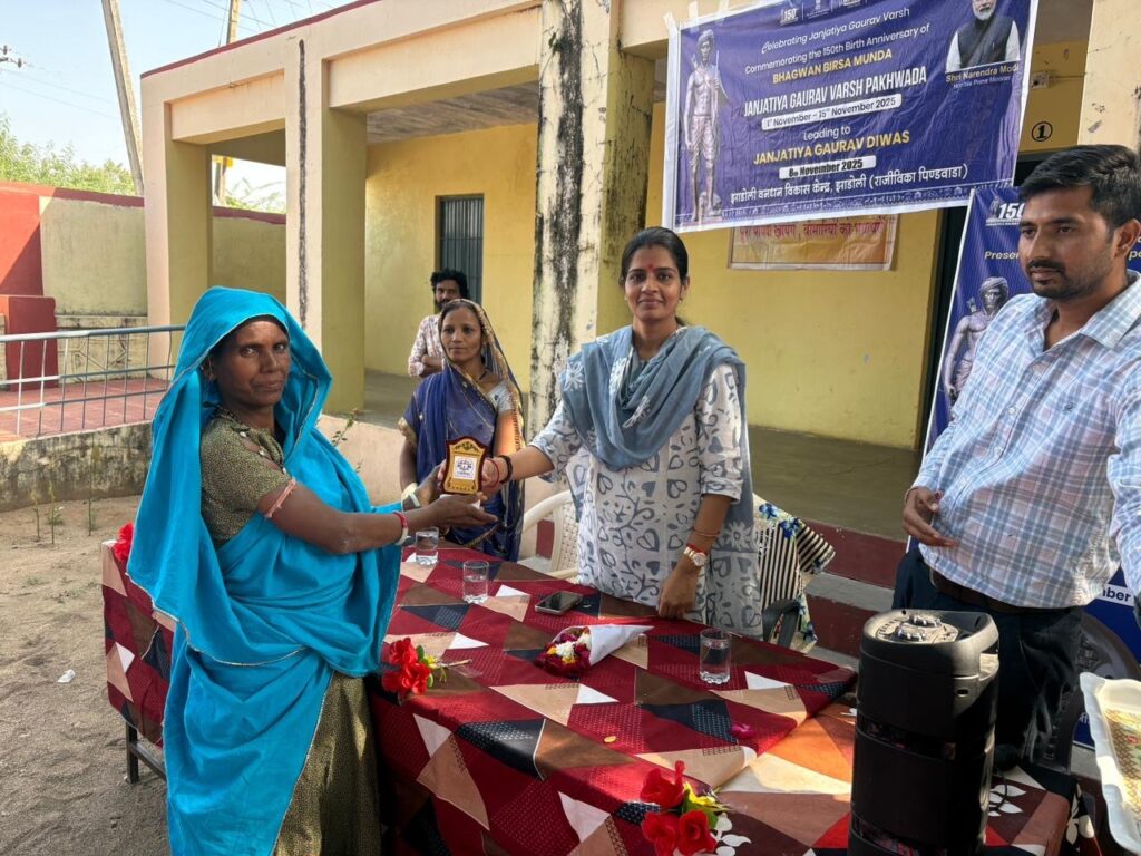 जनजातीय गौरव दिवस के अवसर पर राजस्थान ग्रामीण आजीविका विकास परिषद् (राजीविका) के तत्वाधान में जिले के 25 वन धन केन्द्रों पर विशेष कार्यकम आयोजित हुए जिसमे महान आदिवासी जननायक बिरसा मुंडा जी की 150वीं जयंती हर्षोल्लास के साथ मनाई गई। कार्यक्रम स्थल पर जनजातीय संस्कृति, परंपरा और महिला सशक्तिकरण का अद्भुत संगम देखने को मिला। इस अवसर पर पिंडवाड़ा के झाड़ोली वन धन विकास केंद्र पर राजीविका की जिला परियोजना प्रबंधक श्रीमती अम्बिका राणावत ने बिरसा मुंडा के जीवन संघर्ष, समाज सेवा एवं आदिवासी अधिकारों के प्रति उनके योगदान पर प्रकाश डालते हुए कहा — “बिरसा मुंडा का जीवन संघर्ष, समर्पण और आत्मनिर्भरता का प्रतीक है। उनके आदर्शों से हमें समाज के वंचित वर्गों को मुख्यधारा से जोड़ने की प्रेरणा मिलती है।” कार्यक्रम में रस्साकस्सी, म्यूजिकल चेयर, चम्मच दौड़, मेहंदी एवं रंगोली प्रतियोगिताओं का आयोजन किया गया एवं विजेताओं को पुरस्कृत किया जिनमें महिलाओं ने बढ़-चढ़कर भाग लिया और अपनी प्रतिभा का परिचय दिया। इन प्रतियोगिताओं के माध्यम से महिलाओं में नेतृत्व क्षमता, आत्मविश्वास और टीम भावना को प्रोत्साहन मिला। ⸻ ✨ वन धन उत्पादों की प्रदर्शनी बनी मुख्य आकर्षण कार्यक्रम के अंतर्गत वन धन विकास केंद्र द्वारा निर्मित हस्तशिल्प एवं प्राकृतिक उत्पादों की प्रदर्शनी भी लगाई गई, जिसने सभी का ध्यान आकर्षित किया प्रदर्शनी में स्थानीय महिलाओं द्वारा निर्मित हर्बल गुलाल, पलाश साबुन, कंकोड़ा अचार, मुख़वास, शहद, धावड़ी गोंद, मल्कांगनी तेल, मोरिंगा पाउडर, नीम-हल्दी-चंदन-एलोवेरा साबुन, जूट बैग आदि उत्पादों का प्रदर्शन किया गया इसके अतिरिक्त आज के कार्यक्रम में बाजरा बिस्कुट का नया उत्पाद लांच किया।