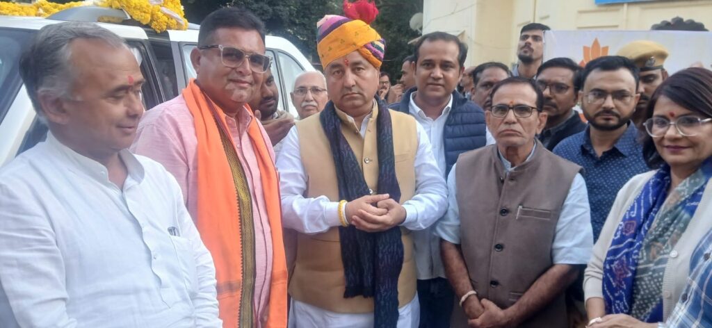 राज्य सरकार के कार्यकाल के 2 वर्ष पूर्ण होने पर राज्य के उद्योग एवं वाणिज्य, युवा मामले एवं खेल विभाग मंत्री राज्य मंत्री के.के. विश्नोई ने बढता राजस्थान हमारा राजस्थान के तहत कलेक्ट्रेट परिसर से विकास रथों को हरी झंडी दिखाकर रवाना किया। ये रथ जिले में विधानसभावार विभिन्न ग्राम पंचायतों आदि में घूमकर राज्य सरकार की योजनाओं का प्रचार प्रसार करेंगे और आमजन को सरकार की योजनाओं से जोडने का काम करेंगे। विकास रथ में उपलब्ध सुझाव पेटिका के माध्यम से जनता से विभिन्न सुझावों को भी लिया जाएगा। 26 दिसम्बर तक विधानसभावार प्रचार प्रसार करने वाले इन रथों के लिए सम्बन्धित उपखंड अधिकारी को नोडल अधिकारी एवं सम्बन्धित विकास अधिकारी को सह नोडल अधिकारी बनाया गया है। इन रथों द्वारा विधानसभा वार एलईडी स्क्रीन पर राज्य सरकार से जुडी विभिन्न योजनाओं का प्रसारण किया जाएगा साथ ही प्रचार सामग्री का वितरण भी किया जाएगा। उल्लेखनीय है कि राज्य सरकार के दो वर्ष पूर्ण होने पर प्रदेश के सभी 200 विधानसभा क्षेत्रों में 200 विकास रथ भेजे गये है। इसके माध्यम से प्रत्येक विधानसभा क्षेत्र में राज्य सरकार की 2 वर्ष की उपलब्धियों, फ्लैगशिप योजनाओं, नीतिगत सुधारों की जानकारी ऑडियो/वीडियों के माध्यम से आमजन तक पहुचाई जाएगी। कार्यक्रम में सभी अतिथियों का बालिकाओं द्वारा सामेले से स्वागत किया गया। विधायक समाराम गरासिया, जिला प्रमुख अर्जुनराम पुरोहित, जिला कलेक्टर अल्पा चौधरी, पुलिस अधीक्षक प्यारेलाल शिवरान, मुख्य कार्यकारी अधिकारी प्रकाश चंद अग्रवाल, डॉ रक्षा भंडारी, गणपत सिंह राठौड सहित अन्य उपस्थित थे।