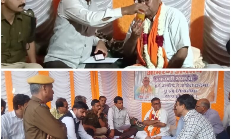 -उपखण्ड अधिकारी, पुलिस उपअधीक्षक की वार्ता व लिखित आश्वासन के बाद ज्यूस पीकर अनशन खोला