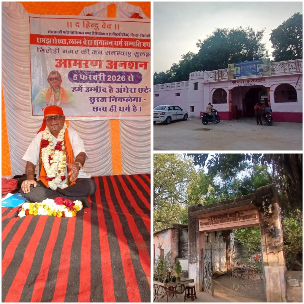 गौर तलब है की राम झरोखा मन्दिर के बने अवैध तरीको से 8 पट्टओ व सात मांगों को लेकर हिन्दू वेव के जिला संयोजक हरीश दवे ने आमरण अनशन किया व इस बाबत एसडीएम सिरोही के ध्यान में सम्पूर्ण प्रकरण लाया।।