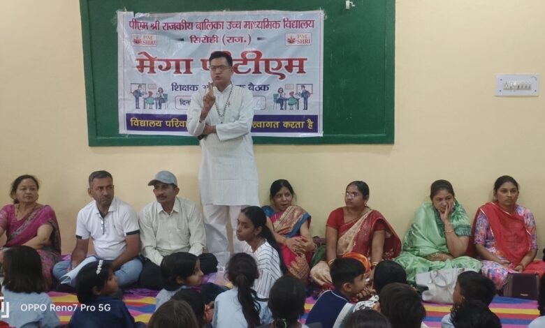 पीएम श्री राजकीय बालिका उच्च माध्यमिक विद्यालय सिरोही में आयोजित मेगा पीटीएम कार्यक्रम में छात्राओं की प्रतिभा को सम्मानित किया गया। कार्यक्रम में अभिभावकों, एसडीएमसी सदस्यों एवं विद्यालय परिवार की उत्साहपूर्ण भागीदारी रही।