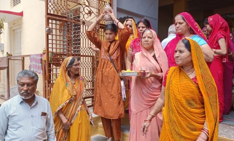 गायत्री मंदिर मेँ होने वाली शिव परिवार की प्राण प्रतिष्ठा मेँ स्थापित होने वाली मूर्तियों को गायत्री परिजनों ने ढ़ोल थाली एवं भोले की जयकारों के साथ गायत्री मंदिर मेँ प्रवेश करवाया रविवार को अक्षय तृतीया के दिन अभिजीत मुहर्त मेँ वैदिक मंत्रोचार के बीच मेँ भक्तो ने शिव परिवार का मंदिर के प्रवेश द्वार पर सामेया किया.।