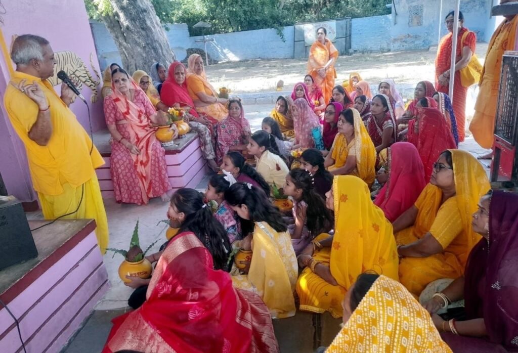 51 कन्याओ एवं महिलाओ ने सिर पर कलश धारण किया हुआ था बाकी महिलाये गीत गाती, शिव का जयकारा लगाती हुई चल रही थी। कलश यात्रा बस स्टैंड रोड, सरजावाव, राजमाता धर्मशाला होते हुए गायत्री मंदिर पहुंची जहां पर पुष्प वर्षा कर स्वागत किया। कलश यात्रा के मंदिर पहुंचने पर कलश की आरती कर स्थापित किया गया। पुष्कर से आए सुरेश शर्मा ने कहा कि कलश यात्रा हिंदू धर्म में आध्यात्मिक, सांस्कृतिक और सामाजिक एकता का प्रतीक है। रंजन देवी ने बताया कि दिन मेँ प्रायश्चित कर्म, गायत्री स्तवन, दुर्गा सप्तशती का पाठ, परिजनों द्वारा अखण्ड महा मृत्यंूजय जाप आरम्भ किया गया। शाम को दीप यज्ञ हुआ जिसमें महिलओ ने बड़़चढ कर हिस्सा लिया।