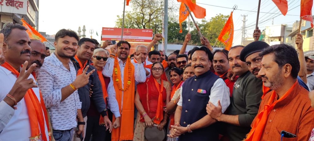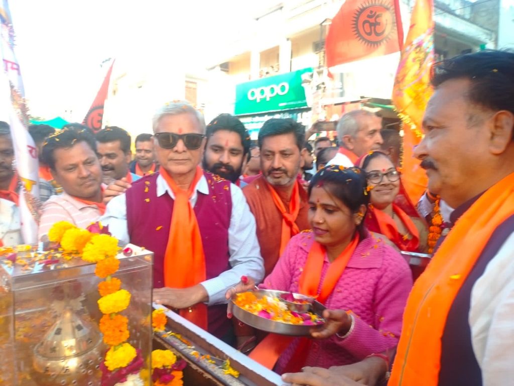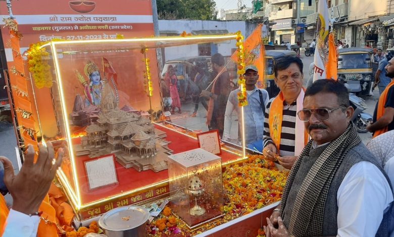 सनातन धर्म प्रेमियों में रामलला जन्मभूमि मंदिर नवनिर्माण को लेकर उमंग व उल्लास, गुजरात वडनगर से अयोध्या जा रहे पदयात्रियों और रथ पर देवनगरी के राम भक्तों ने की पुष्पवर्षा
